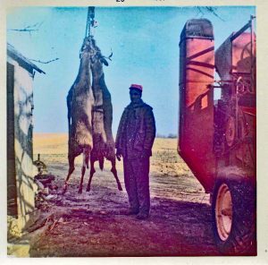 One coyote’s face became well known to the family when it was turned into a coyote mask. My husband remembers the mask, but it is his brother that remembers wearing it for Halloween. His brother also remembers cleaning deer hides and making the hides into shammies to be used by the family.