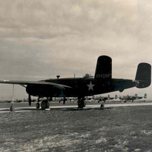 On the move again, Dewey went to Florida for a short time before landing at Greenville Army Air Base in South Carolina. He joined the 334th Bombardment Group of the Third Air Force becoming a mechanic on the B-25 Mitchell. In his new role, he cared for the planes used to train replacement aircrews. Like Howard, Dewey had studied at the American Aeronautical Institute in Kansas City prior to his induction in the Army. He had training focused on sheet metal and riveting, which weren’t bad skills for an airplane mechanic to possess.