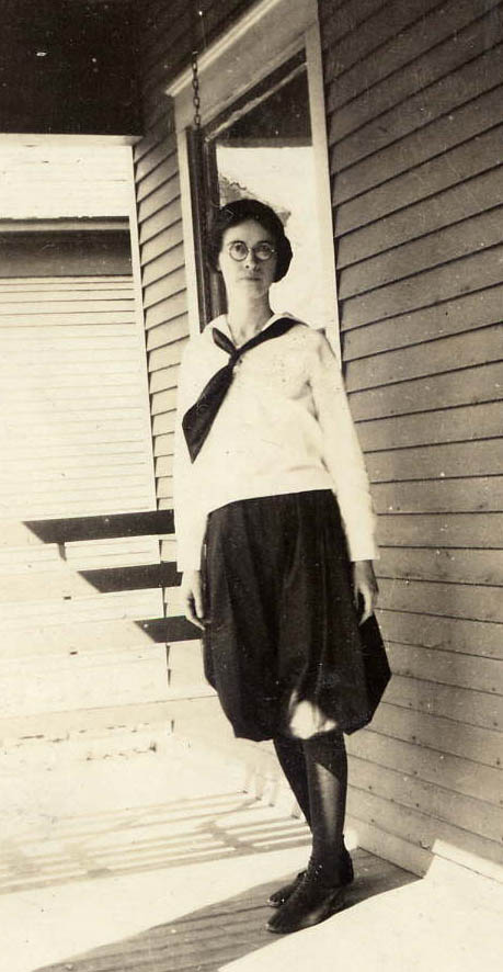 Although Lydia may have held a job prior to her 20th birthday, the first record of her working is in 1913 when she was clerking in Morrison’s store in Pawnee (Anna), KS. It seems that she helped in the store off and on (July 13, 1913; October 1913 newspapers) and also worked for some time in Fort Scott (December 15, 1914 newspaper). It appears that she had been working at Morrison’s store more regularly in May 1915, as the newspaper reported her absence from the store when she took a trip to Fayetteville, Arkansas.