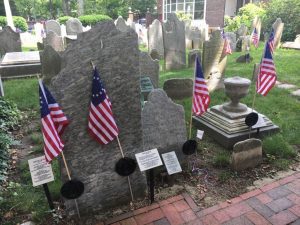 Despite the sparse nature of the graveyard, the American flag could be seen gracing various stones throughout. What was really intriguing was the British flags, which were scattered throughout. Sometimes they were very close to graves with American flags. Research shows that 28 U.S. flags fly over the graves of Revolutionary War soldiers and 8 British flags fly over the graves of soldiers of the French and Indian Wars, which pre-dated America’s independence.