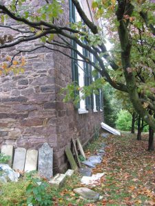 Behind the church lay a graveyard that was worthy of attention. It was sparse in spots as many of the stones had given away to nature and time. Fortunately, many had not been destroyed, but simply could not stand where originally place. Instead, many gravestones lined the back of the church and the fence row.