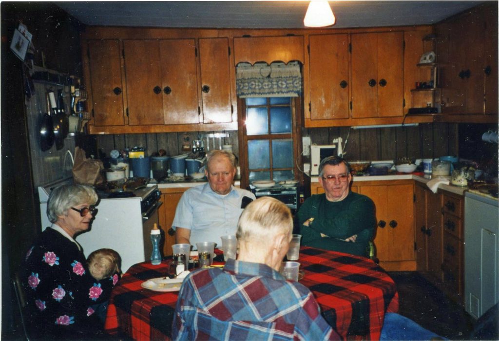 When electricity came through west of what is now Highway 7, Joe, Nellie, and the kids that remained at home moved to the property that Joe and Nellie had purchased during the war. Ed, probably with some help with his dad, wired up the new property and the family had electric lights for the first time.