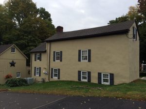 The exact date that this home was built is unknown, but it was prior to 1825. The house is in Newtown, PA and was built in an area that was originally the commons and owned by no one. However, when purchased by the Brooks family records indicate, they had been living there for some time either renting or squatting on the land. Rod’s 5th great grandfather was Joshua Brooks and he lived in Newtown just prior to the house being purchased. William Brooks, the owner of the property was very likely his brother or father; however, we are still proving relationships. Note: The house does not face the road. It is very long and narrow and originally ended where the chimney is. In 2014, we got to go in the house and see the first and second floors. There is an attic space with stairs to it as well.