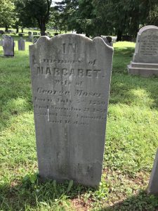 Margaret was mentioned in the church memorial as she was the oldest person to ever have been buried in the graveyard at the time it was written.  She had died at age 104 years, 4 months, and 16 days.  It stated that she was buried not far from Reverend Muhlenberg.  When we visited the church and graveyard, we found both of their graves.  Although not immediately adjacent, they were not far away from each other.