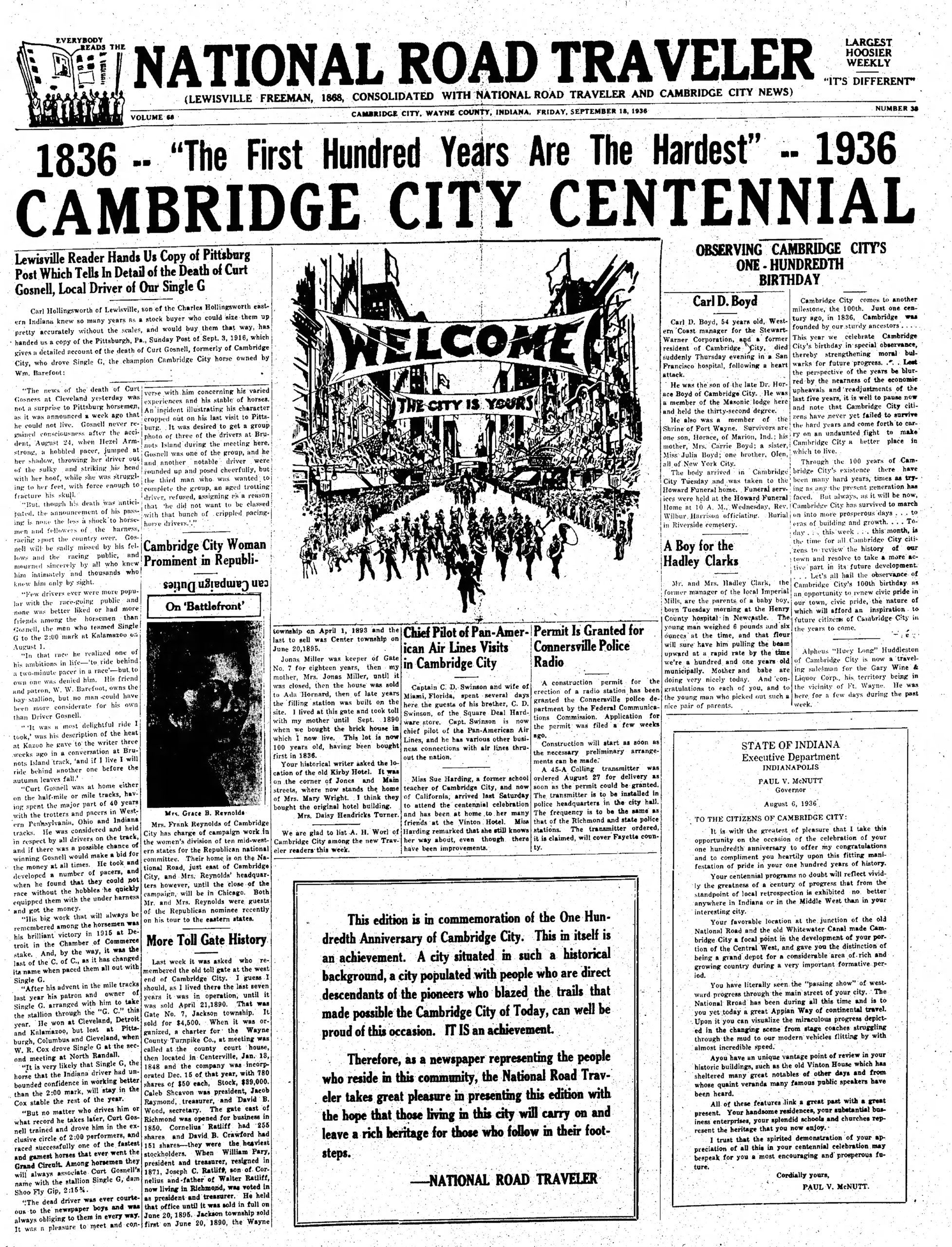 Adapted from stories in The Tri-County Banner and the National Road Traveler.]