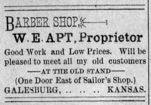 It was a small town and his barber shop was so well known that Will didn’t need to advertise the location. Matter of fact, the barbershop became a landmark for describing other locations and events in town. It was also likely a place the men hung out and stories were told. Given Will’s jolly personality and his story telling to his grandchildren, it seems likely that he was a major contributor to stories told in the barbershop in Galesburg.