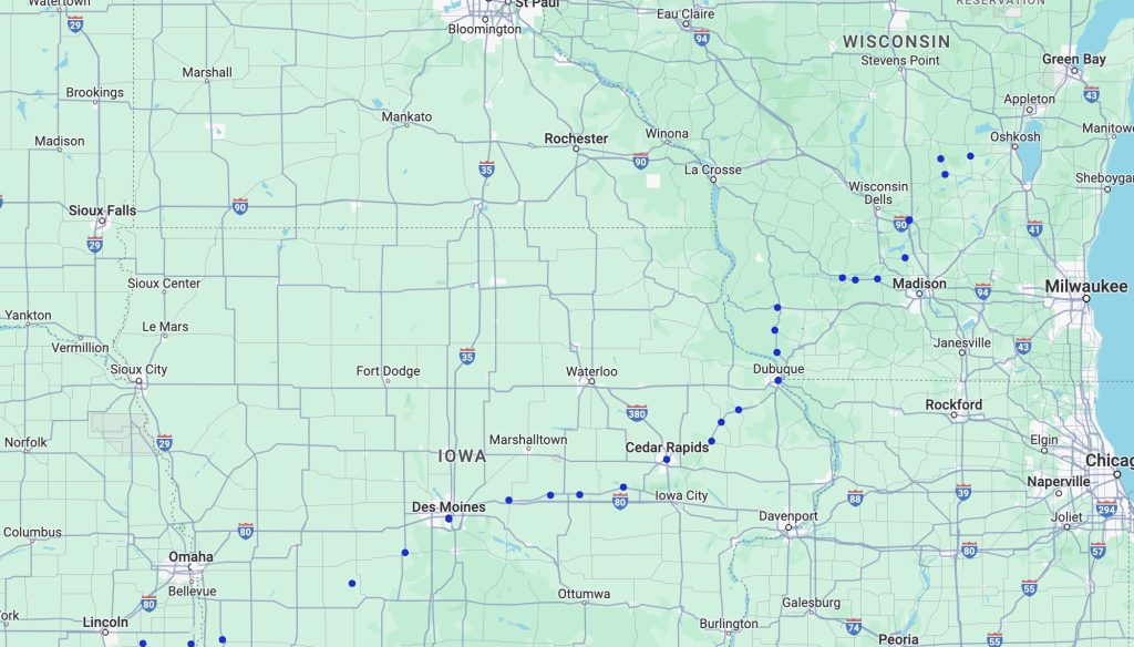 Although they weren’t in the market for any land, as they traveled they inquired about the local price of land. They found that land near Dubuque, Iowa was selling for $25 per acre. Near Marengo on the Iowa River, land was going for $10 to $40 per acre depending on the specific property. And, later on they found an area where land would only cost them $15 to $20 per acre.