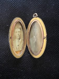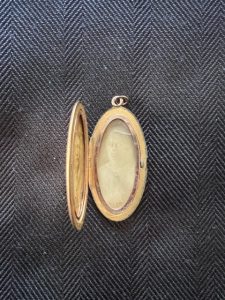 In early 2009, I was talking with my cousin Ava about it. She said that she had her mother’s jewelry box, but she hadn’t looked through it and missing her mother who had passed a few years earlier she sounded hesitant to do so. To my surprise, she messaged me sometime later and said that she had looked in her mom’s jewelry box and that she thought she had found the locket. It had no chain, but the locket was intact.