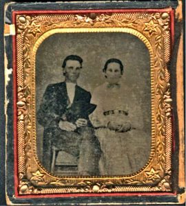 Tiny photograph believed to be Passco & Martha (Johnson) Peelle soon after their marriage.