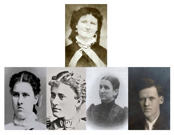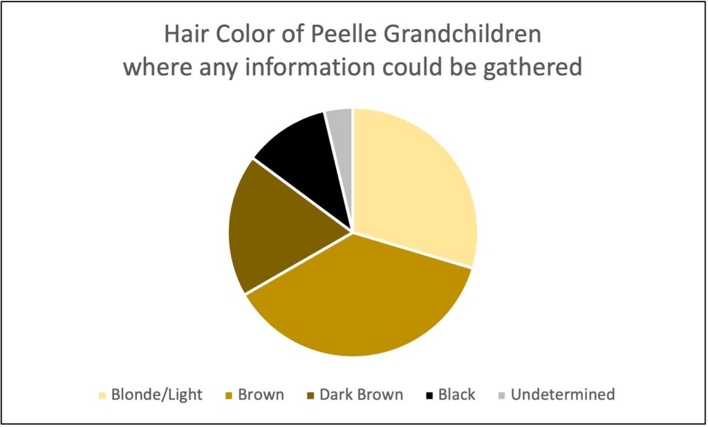 Using Rachel (Peelle) Benson and her children as an example, it can be seen that three of the four appear to have dark brown hair with one having lighter brown or blond hair.  The three females appear to have brown eyes with her son William’s eyes being unclear in the photograph.